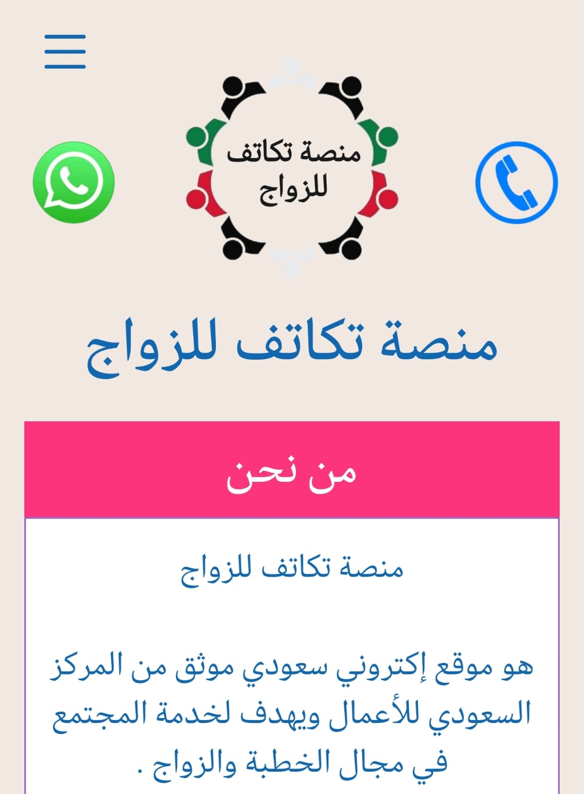 هو موقع إكتروني سعودي موثق من المركز السعودي للأعمال ويهدف لخدمة المجتمع في مجال الخطبة والزواج .